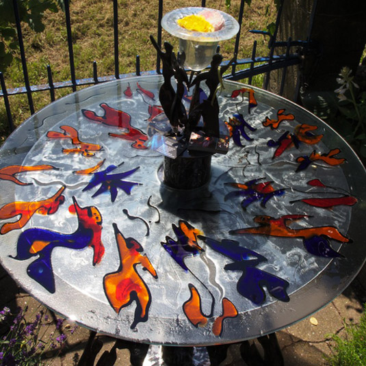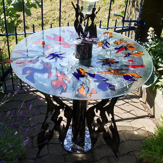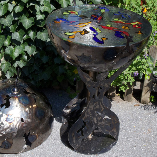 In den letzten Wochen und Monaten habe ich nach Herzenslust an einigen größeren Objekten gearbeitet. Besonders fasziniert mich dabei das Zusammenspiel von Metall und Glas. Ganz wichtig dabei für mich: es sollen nicht nur dekorative Objekte entstehen, sondern durchaus auch funktionale Möbelstücke wie z.B. Tische.