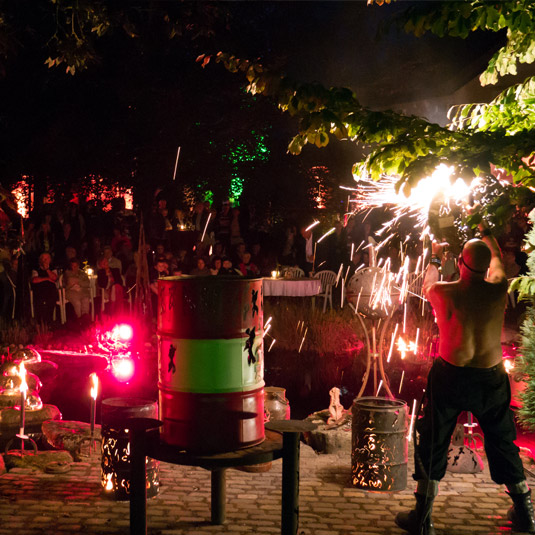 Am Samstag war meine Show Teil des Abendprogramms. Die besondere Atmosphäre in der herrlichen Gartenanlage und meine kleine Bühne direkt am Teich werden mich diesen Abend nie vergessen lassen.
